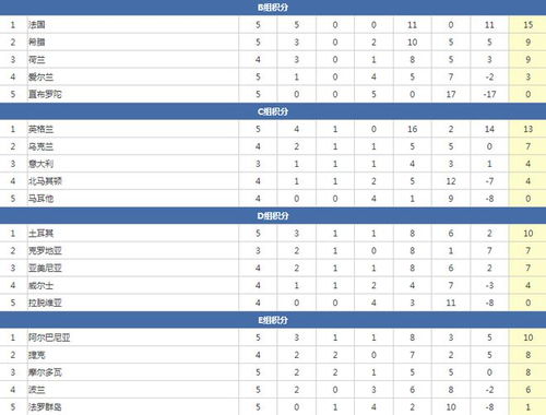随着2022年世界杯欧洲区预选赛的深入,各小组的竞争愈发激烈。积分榜上的每一次变动都牵动着球迷的心。本文将深入分析当前世欧预赛小组赛的积分榜情况,探讨各队的表现及其背后的战术和策略。