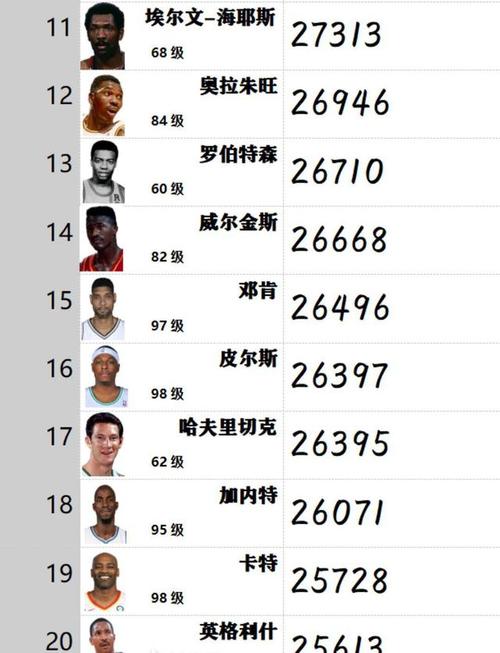 紧随其后的是另一位传奇人物——卡尔·马龙。马龙以其强壮的身体和不懈的努力,在NBA赛场上累计得分36,928分,位列历史总得分榜第二。虎扑篮球的网友们对马龙的评价往往是“铁人”和“得分机器”,他的职业生涯充满了坚韧和毅力,即使未能获得总冠军,他的得分成就依然让人肃然起敬。