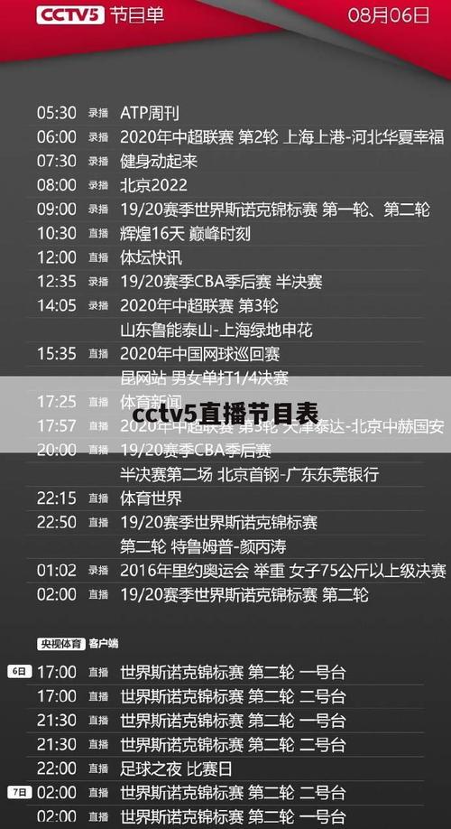 央视体育频道节目预告
