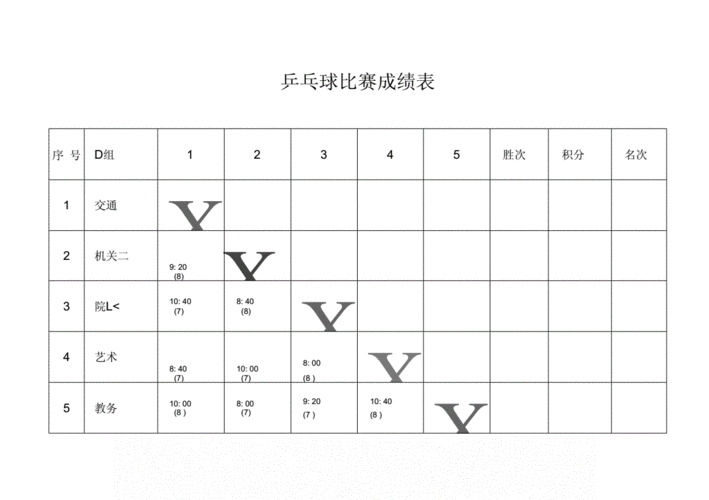 乒乓球团体赛是一项受欢迎的运动,团队之间的比赛常常激烈而精彩。了解比赛计分表是参与者必备的基础知识之一。以下是乒乓球团体赛的计分表及相关规则说明: