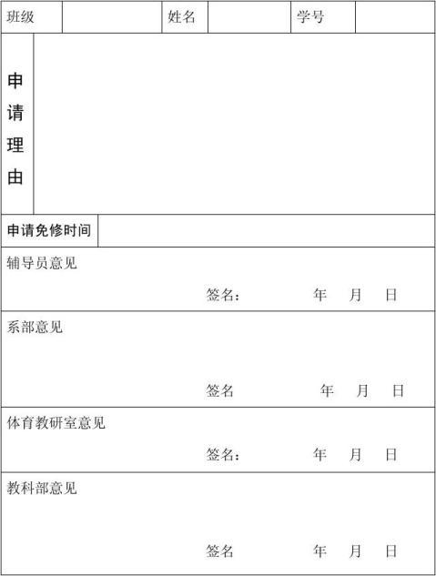 体育免修申请书电子版
