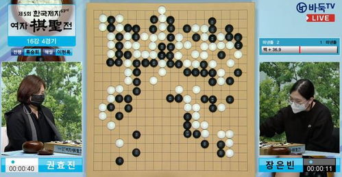 於之莹八段执黑对刚刚在大棋士赛连战连捷的柳琪峰五段,序盘两人落子如飞,吸引中国围棋协会主席常昊驻足观战。黑棋在左下白棋厚势中出动过早,虽得以出头,但外围被碰瓷伤得不轻,随后白棋借助对右边盘黑大块孤棋的攻势,于中腹捎带着吃住黑棋数子,确立优势。官子阶段略有反复,柳琪峰还是以1/4子之优险胜。